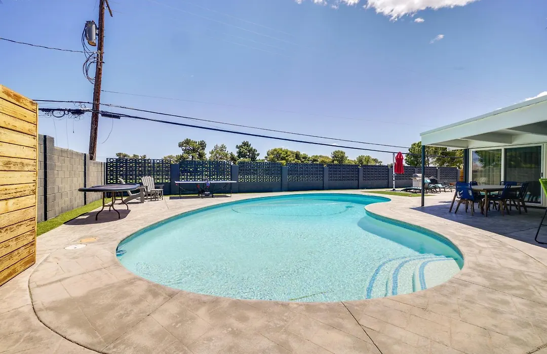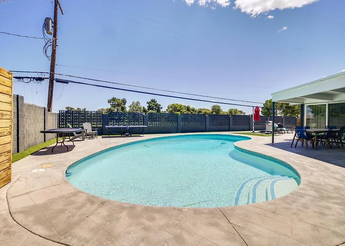 Located about a 10-minute drive from Little White Wedding Chapel, 3 Mi To Strip Mid-Century Gem With Hot Tub In Vegas Villa Las Vegas boasts a private pool with a sauna. Featuring a patio, the property is situated 2.3 km from K-Las Vegas Shopping Center.